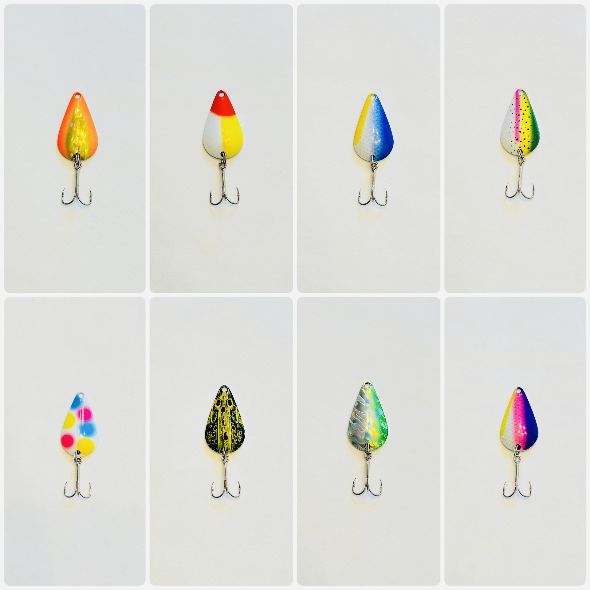 The newest addition to the wobbler line, available in a variety of flashy, unique patterns. These 1/2oz wobblers are great for all species and come equipt with a treble hook. The Yoop Wobbler can be used for casting in lakes, streams, ponds, or even used for Spring season trolling in the Great Lakes. This combination of weight and compact size prevents the lure from catching wind while casting, improving casting distance.